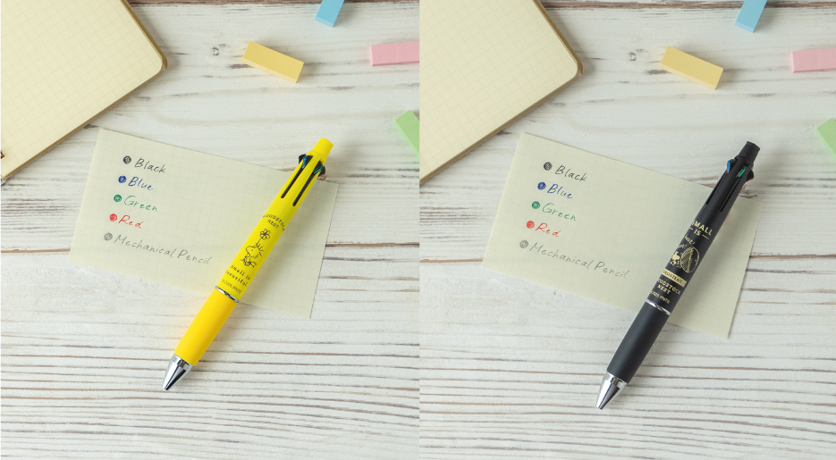 黒・赤・青・緑のボールペンに加え、シャープペンも1本になった多機能ペン。 お仕事でも、お家でも、1本あると重宝します。 気分の上がるイエローと、どんなシーンにもなじむブラックの2種類。 ※2025/9/12発売予定